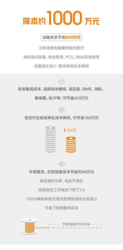 1500V VS 1000V,200MWh儲能項目系統(tǒng)降本超過1000萬?