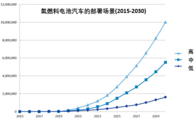 至于在這十年里累計能銷售多少輛氫燃料電池汽車,各方預測結果不一。E4tech認為到2030年為止,較為合理的輕型燃料電池汽車的銷量上限累計為1000萬(如圖3所示)。據(jù)此估算,假設全球汽車的年銷量保持在1億輛左右,該預測數(shù)字相當于每年氫燃料電池汽車銷量約占當年輕型車銷量的1%左右。