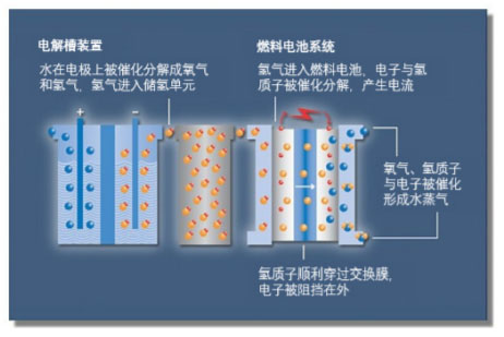圖1電解槽裝置和燃料電池系統(tǒng)的工作原理示意圖