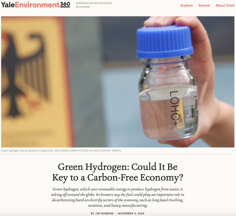 中國儲能網(wǎng)訊:耶魯e360網(wǎng)站發(fā)表署名Jim Robbins的文章,題目是:Green Hydrogen: Could It Be Key to a Carbon-Free Economy?(綠色氫氣:能成為零碳經(jīng)濟(jì)的關(guān)鍵嗎?),摘要如下: