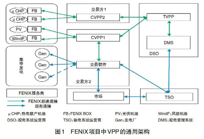 2005年~2009年,來自歐盟8個國家的20個研究機(jī)構(gòu)和組織合作實(shí)施和開展了FENIX項(xiàng)目,F(xiàn)ENIX的目標(biāo)是通過將分布式能源資源聚合成大型VPP和分散管理,最大限度地提高分布式能源對電力系統(tǒng)的貢獻(xiàn),擺脫傳統(tǒng)對電力系統(tǒng)小單元的管理。