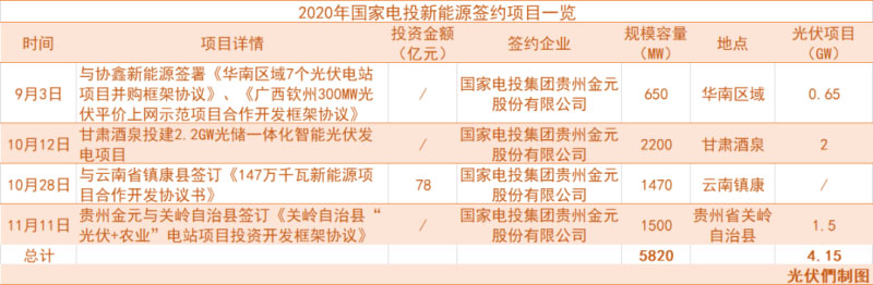 貴州金元是貴州省大型綜合性能源企業(yè),作為國家電投集團(tuán)公司的二級(jí)單位,主要有火電、水電、光伏發(fā)電、瓦斯發(fā)電、煤炭、煤電錳、工程建設(shè)、房地產(chǎn)、酒店經(jīng)營及物業(yè)管理等產(chǎn)業(yè)。此前,11月初,光伏們對(duì)國家電投2020年簽約的新能源項(xiàng)目做了匯總;根據(jù)公開信息,截止2020年10月底,國家電投在新能源領(lǐng)域投資的規(guī)模超過21GW,遍布河南、山東、山西、廣西、湖南、湖北、河北、甘肅、云南等省份,投資總金額約達(dá)594.2億元;其中光伏領(lǐng)域規(guī)模超11.45GW。詳情請(qǐng)見《2020年國家電投簽約超10GW光伏項(xiàng)目,投資總額近600億》。