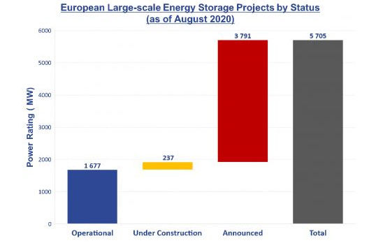 圖1. 截至2020年8月,按部署情況劃分的歐洲大型儲(chǔ)能項(xiàng)目