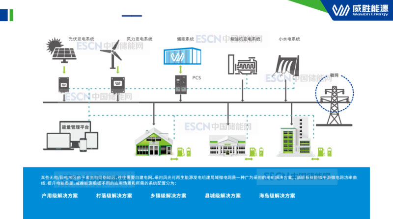 威勝能源提供的儲(chǔ)能方案有很多種,從電源側(cè)、電網(wǎng)側(cè)、到用戶側(cè),威勝都有可以應(yīng)用的方案,其他包括微電網(wǎng),從戶級(jí)到村級(jí)、到縣級(jí)到海島都有,還有分布式離網(wǎng)的儲(chǔ)能應(yīng)用方案。