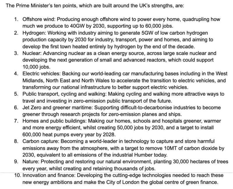 英國首相鮑里斯·約翰遜日前頒布英國“綠色工業(yè)革命”計劃,包括以下10點具體內(nèi)容: