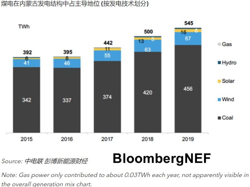 2019年煤電在內(nèi)蒙古總發(fā)電量的占比