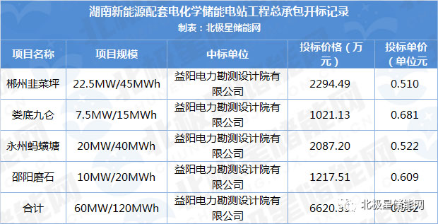 11月26日,湖南郴州韭菜坪等四個新能源配套電化學(xué)儲能電站工程總承包開標(biāo),結(jié)果顯示四個項目中標(biāo)候選人均為益陽電力勘測設(shè)計院有限公司,四個項目總投標(biāo)額達(dá)6620萬元。此次招標(biāo)不包含儲能電池等核心設(shè)備。