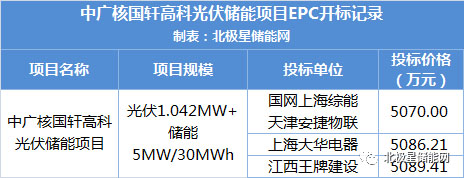 11月25日,中廣核國軒高科儲能光伏項目設(shè)計采購施工工程總承包中標(biāo)候選人公示,第一中標(biāo)候選人為國網(wǎng)上海綜合能源服務(wù)有限公司與天津安捷物聯(lián)科技股份有限公司的聯(lián)合體,投標(biāo)價格約為5070萬元。此外第二中標(biāo)候選人為上海大華電器設(shè)備有限公司,第三中標(biāo)候選人為江西王牌建設(shè)工程集團有限公司。