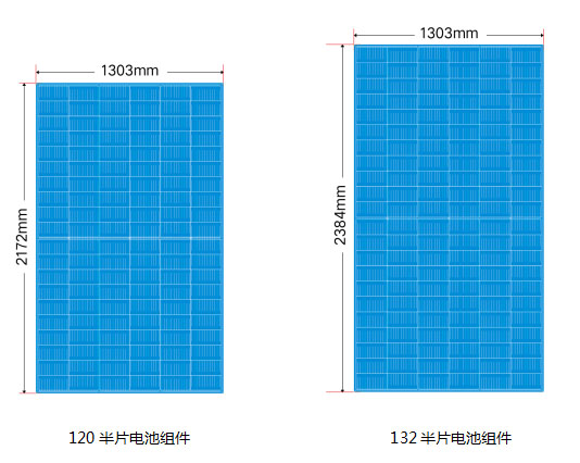 2. 半片電池組件標(biāo)準(zhǔn)尺寸: