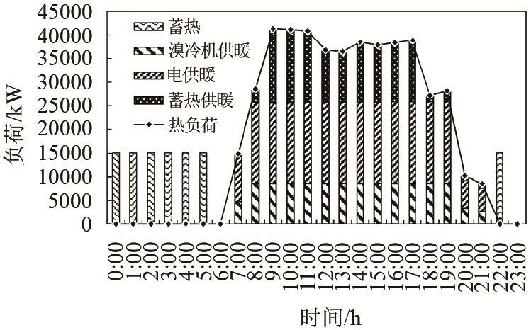 水蓄熱技術(shù)與傳統(tǒng)分布式能源系統(tǒng)耦合應(yīng)用方式與冰蓄冷技術(shù)耦合應(yīng)用類似,也為余熱蓄熱和低谷電蓄熱技術(shù),對(duì)應(yīng)的設(shè)計(jì)原理也如圖2所示。Wu等驗(yàn)證分布式能源系統(tǒng)與余熱水蓄熱技術(shù)耦合應(yīng)用具有很好的經(jīng)濟(jì)性和環(huán)境友好性。Blarke等建立余熱水蓄熱技術(shù)與分布式能源系統(tǒng)耦合應(yīng)用系統(tǒng),得到了類似的結(jié)論。趙靜等研究了低谷電水蓄熱技術(shù)對(duì)傳統(tǒng)分布式能源系統(tǒng)的性能影響,發(fā)現(xiàn)低谷電水蓄熱技術(shù)不僅可以滿足熱負(fù)荷需求,如圖7所示,還可以增加系統(tǒng)運(yùn)行時(shí)間,提高系統(tǒng)經(jīng)濟(jì)效益及能源利用效率。