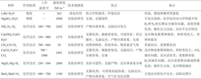 熱化學(xué)材料是利用可逆吸附、吸收、化學(xué)反應(yīng)進(jìn)行熱量的蓄積與釋放,具有溫域范圍廣、蓄熱密度大、長(zhǎng)期蓄熱熱損失小等優(yōu)點(diǎn)。