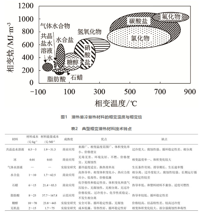 相變潛熱蓄冷蓄熱材料是利用相態(tài)變化時(shí)的潛熱進(jìn)行冷量或熱量的儲(chǔ)存與釋放。相變潛熱材料由于蓄能密度遠(yuǎn)高于顯熱材料,成為了目前最受關(guān)注的蓄冷蓄熱技術(shù)。