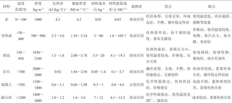 表1 典型顯熱材料技術(shù)特點(diǎn)