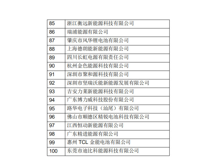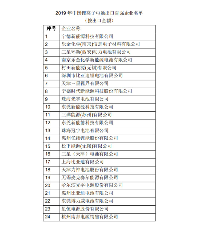 2019年中國鋰離子電池出口百強企業(yè)名單