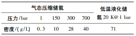 對(duì)比氣氫和液氫存儲(chǔ),從表1中可以看到即使氫氣壓力高達(dá)700bar,6kg的氫氣還需要一個(gè)150L左右的儲(chǔ)氫罐,而-253℃的液氫密度可以達(dá)到71g/L。所以氣態(tài)存儲(chǔ)需要壓縮到高壓,將氫氣加壓到45MPa時(shí),其儲(chǔ)氫質(zhì)量百分比只有4wt%,達(dá)不到美國(guó)能源部(DOE)的指標(biāo),所以一般氣氫存儲(chǔ)的壓力為70MPa。