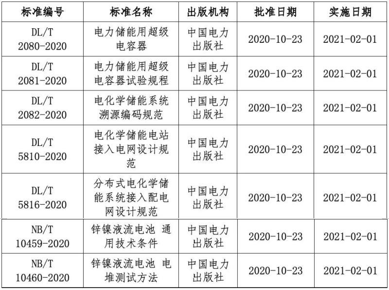 中國儲能網(wǎng)訊:11月27日,國家能源局發(fā)布2020年第5號公告,批準(zhǔn)了502項能源行業(yè)標(biāo)準(zhǔn),其中儲能部分包含電力儲能用超級電容器、電化學(xué)儲能系統(tǒng)溯源編碼規(guī)范、電化學(xué)儲能電站接入電網(wǎng)設(shè)計規(guī)范、分布式電化學(xué)儲能系統(tǒng)接入配電網(wǎng)設(shè)計規(guī)范等7項標(biāo)準(zhǔn)。新標(biāo)準(zhǔn)將于2021年2月1日開始實施。