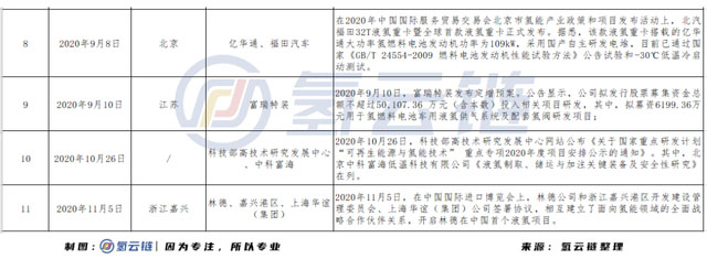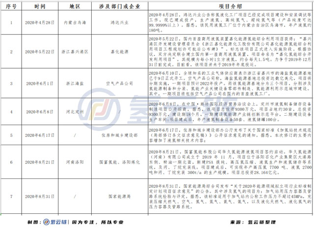 表1 2020年國(guó)內(nèi)液氫項(xiàng)目及政策一覽