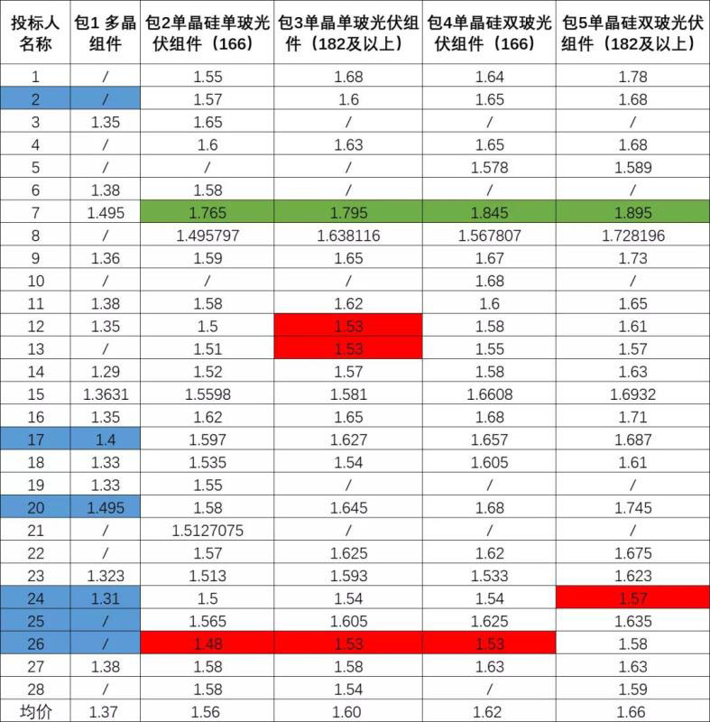 對比166與182及以上標段可以看出,182及以上相對166組件的平均溢價大約在0.04元/瓦左右。而此前有行業(yè)相關人士指出,2021年182及以上組件的成本節(jié)省對應到166組件,可帶來約0.1元~0.15元/瓦左右的溢價空間。根據(jù)此次開標價格情況來看,顯然是182及以上組件更具競爭力。不過,從參與企業(yè)數(shù)量來看,具備182及以上產(chǎn)能的企業(yè)仍在少數(shù)。