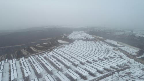 陜西魯能宜君3×20兆瓦農(nóng)光互補項目位于陜西省宜君縣,包括魯能宜君青石塬20兆瓦農(nóng)光互補項目、魯能宜君英家塬20兆瓦農(nóng)光互補項目、魯能宜君二期20兆瓦農(nóng)光互補項目三個項目,總裝機容量60兆瓦。由于該項目工程開工時間晚、建設(shè)工期緊,且地處宜君山地,復雜的地形環(huán)境、提前到來的寒冬施工期以及緊張的設(shè)備供貨,工程建設(shè)目標的順利實現(xiàn)面臨諸多挑戰(zhàn)。在種種不利因素下,山東三建項目執(zhí)行團隊憑借以往的山地施工經(jīng)驗,提前對該項目工程進行科學合理策劃,制定了強有力的施工方案及設(shè)備供貨催繳計劃。在工程建設(shè)過程中,項目全體員工始終堅守施工一線,凝心聚力,攻堅克難,嚴把安全、質(zhì)量關(guān),加班加點搶趕工期,在全力推進土建施工的同時,提前安排后期電氣施工,為工程并網(wǎng)發(fā)電爭取了寶貴的時間。經(jīng)過日夜奮戰(zhàn),公司以最快的速度、高質(zhì)量完成工程建設(shè)任務(wù),提前完成并網(wǎng)發(fā)電節(jié)點目標。
