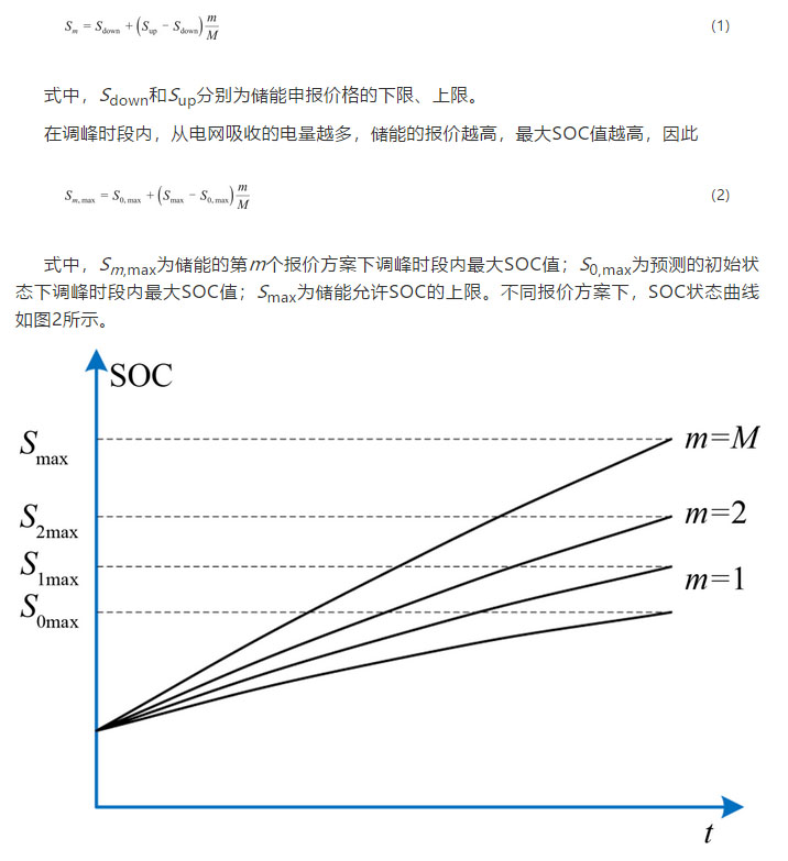 根據(jù)青海、甘肅已發(fā)布的電儲能交易規(guī)則,在風(fēng)電場、光伏電站計量出口內(nèi)建設(shè)的電儲能設(shè)施,其充電能力優(yōu)先由所在風(fēng)電場和光伏電站使用,由電儲能設(shè)施投資運營方與風(fēng)電場、光伏電站協(xié)商確定補(bǔ)償費用。儲能(特指新能源發(fā)電側(cè)電能,下同)在獨立參與調(diào)峰市場前,需要基于所配套的風(fēng)電場或光伏電站次日的發(fā)電出力計劃,預(yù)測儲能次日的充放電行為,獲得其荷電狀態(tài)(state of charge,SOC)預(yù)測值,進(jìn)而決策其參與調(diào)峰市場的報價行為。儲能獨立參與市場獨立承擔(dān)收益及損耗成本。