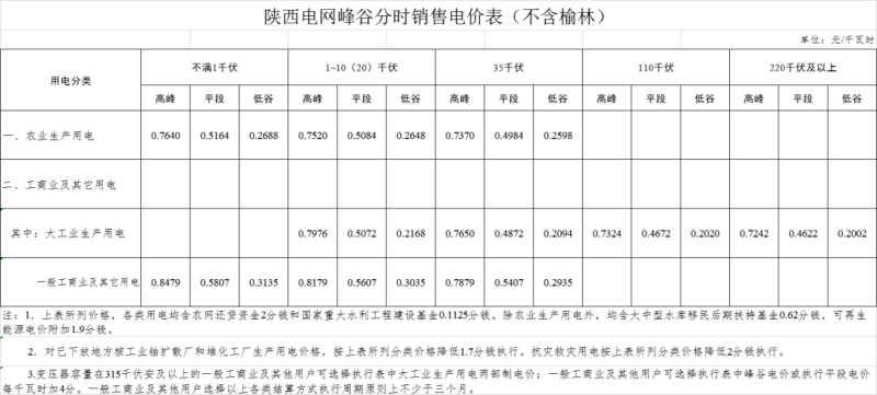 陜西電網(wǎng)銷(xiāo)售電價(jià)。本次陜西省輸配電價(jià)改革降價(jià)空間用于降低陜西電網(wǎng)工商業(yè)用電價(jià)格,每千瓦時(shí)平均降低4.3分錢(qián),大工業(yè)用電基本電價(jià)每千伏安每月降低2元。