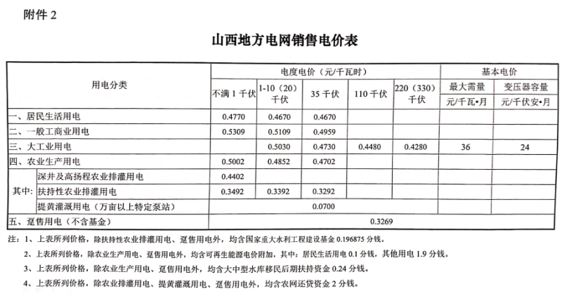 《關(guān)于山西地方電網(wǎng)輸配電價(jià)和銷(xiāo)售電價(jià)有關(guān)事項(xiàng)的通知》