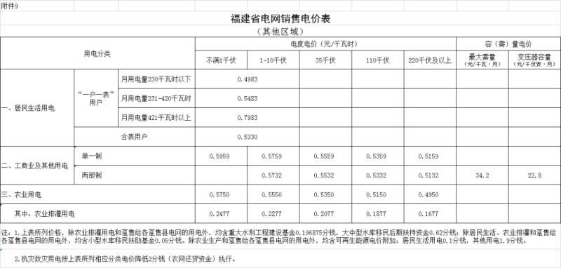 10、福建省大工業(yè)用戶統(tǒng)一執(zhí)行工商業(yè)及其他用電兩部制價(jià)格。