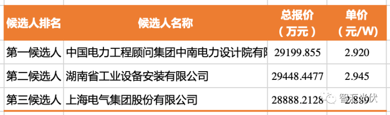 中標(biāo)價(jià)格:15109.38萬元;折合單價(jià):4.197元/W;