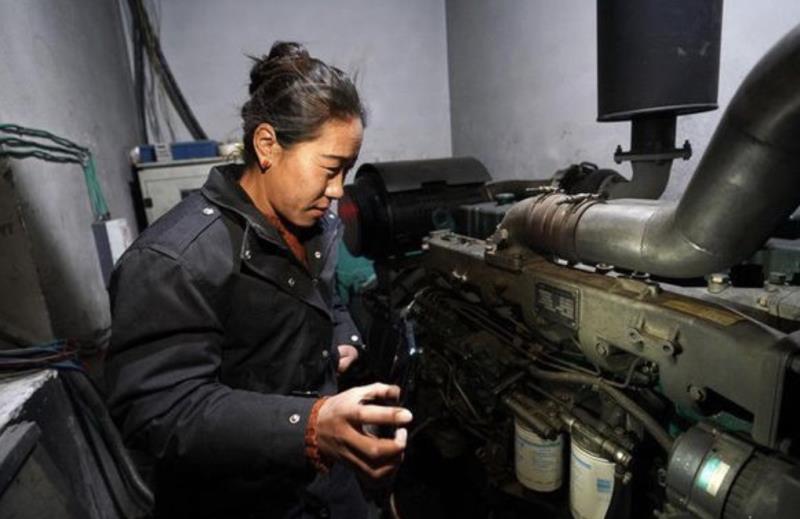 在西藏日喀則市薩嘎縣西部驛站大酒店,工作人員查看發(fā)電機(jī)運(yùn)行情況(11月27日攝)。新華社記者 詹彥 攝
