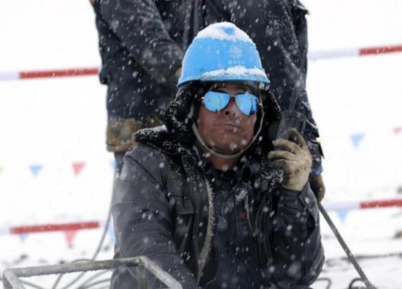 “施工人員服用保護(hù)心臟的藥,背著氧氣瓶上到山頂,工作時(shí)心跳一直保持在每分鐘120次以上,一個(gè)小時(shí)就得輪班下來(lái)。”譚晉說(shuō),山頂?shù)奶鞖庾兓脽o(wú)常,有時(shí)晴朗,強(qiáng)烈的紫外線(xiàn)照得大家滿(mǎn)臉?biāo)?;有時(shí)一場(chǎng)大雪,有的工人會(huì)瞬間雪盲。