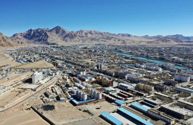 西藏阿里地區(qū)噶爾縣獅泉河鎮(zhèn)全景(12月2日攝,無(wú)人機(jī)照片)。 新華社記者 詹彥 攝