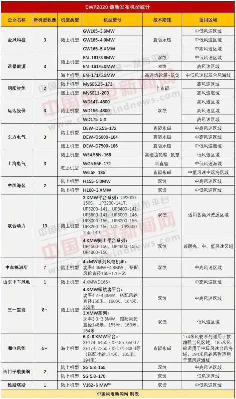 本網(wǎng)獨(dú)家統(tǒng)計(jì)了21家中國(guó)風(fēng)電整機(jī)商名錄及2020年最新發(fā)布產(chǎn)品機(jī)型信息(數(shù)據(jù)更新至2020.12.5),排名不分先后,部分連續(xù)兩年沒(méi)有新增訂單的整機(jī)企業(yè)不在本次統(tǒng)計(jì)范圍!