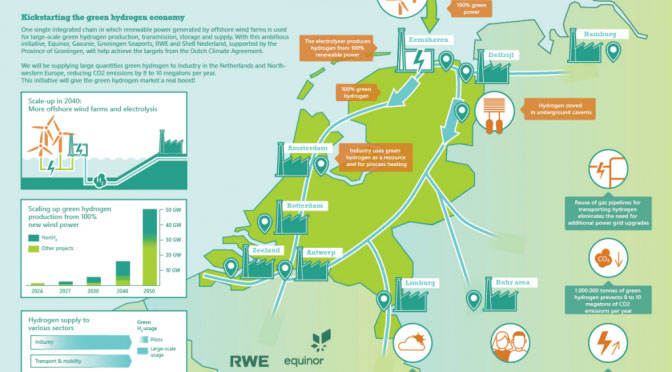 NortH2項目于2020年2月與殼牌、格羅寧根海港Gasunie和格羅寧根省一起啟動。Equinor加入RWE成為該項目的新合作伙伴。該項目將在2021年之前完成可行性研究,目標(biāo)是在2021年下半年開始項目的開發(fā)。