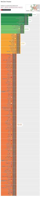 Energy & Climate Intelligence Unit 機(jī)構(gòu)對(duì)數(shù)十個(gè)國(guó)家和地區(qū)提出的凈零排放或碳中和實(shí)現(xiàn)目標(biāo)進(jìn)行了統(tǒng)計(jì)并滾動(dòng)更新。點(diǎn)擊此處查看最新數(shù)據(jù)