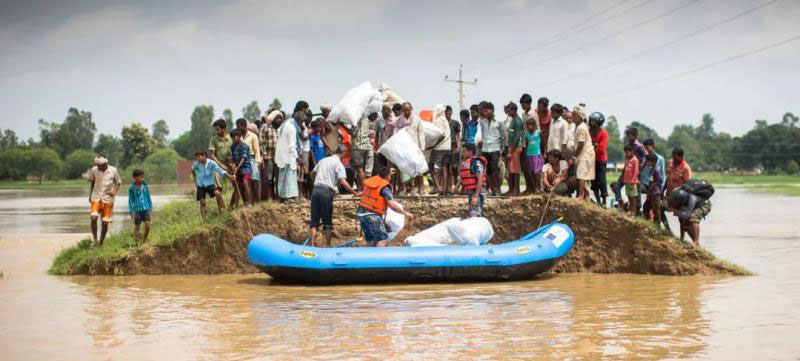 ©? 聯(lián)合國兒童基金會/Samir Jung Thapa 食物和飲用水通過木筏運送到尼泊爾班克縣的一個村莊,當(dāng)時該村的道路因暴雨而被切斷。