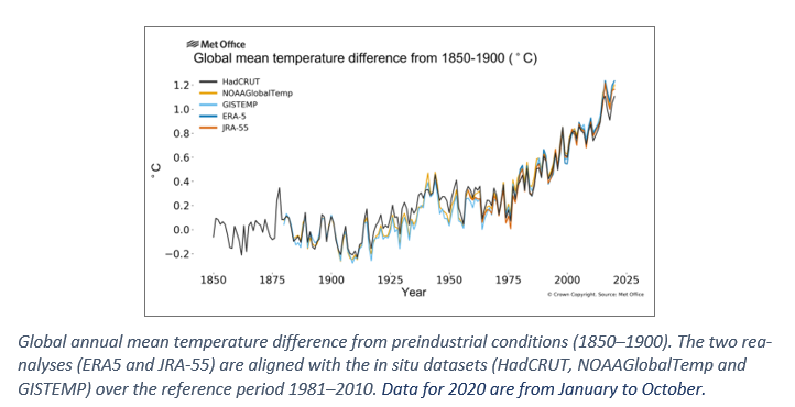 2020年的報告基于1月至10月的氣溫數(shù)據(jù)。最終報告將于2021年3月發(fā)表。報告結(jié)合了來自各國家氣象和水文部門、區(qū)域和全球氣候中心、以及多個聯(lián)合國機構(gòu)和合作伙伴提供的信息。