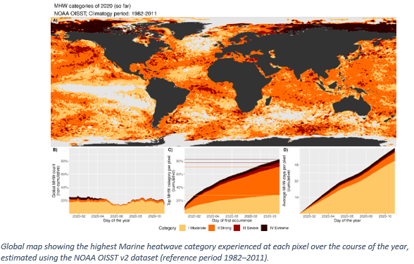 這份名為“2020年全球氣候狀況”的臨時報告指出,2020年,海洋熱量處在創(chuàng)紀錄的水平,全球80%以上的海洋均在某些時段經(jīng)歷了海洋熱浪,對已因吸收二氧化碳而遭受更多酸性水域的海洋生態(tài)系統(tǒng)產(chǎn)生了廣泛影響。