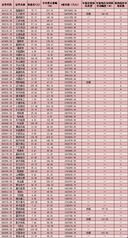 表:總市值在100億元以上光伏概念股市場表現(xiàn)一覽