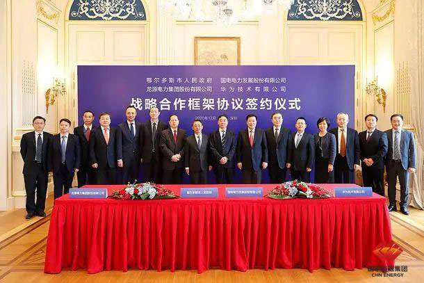 鄂爾多斯市政府、華為、國(guó)電電力、龍?jiān)措娏炇鹚姆綉?zhàn)略合作框架協(xié)議