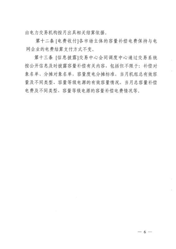 4.電費收付:各市場主體的容量補償電費保持與電網(wǎng)企業(yè)的電費結(jié)算支付方式不變。