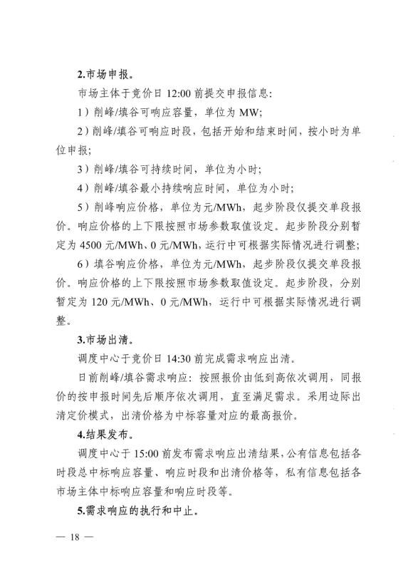 4.削峰響應(yīng)價格:單位為元/MWh,起步階段僅提交單段報價。響應(yīng)價格的上下限按照市場參數(shù)取值設(shè)定。起步階段分別暫定為4500元/MWh、0元/MWh,運行中可根據(jù)實際情況進行調(diào)整;