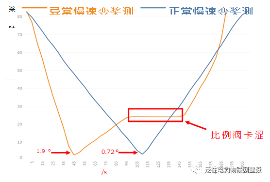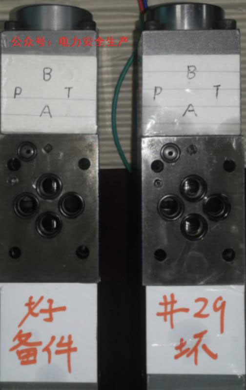 經(jīng)調(diào)查,自2019年12月15日至事故發(fā)生期間,29號(hào)風(fēng)電機(jī)組故障停機(jī)時(shí)葉片順槳速度遠(yuǎn)小于設(shè)定值。檢測(cè)29號(hào)風(fēng)電機(jī)組液壓系統(tǒng)比例閥,發(fā)現(xiàn)閥體銹蝕且液壓油中含有雜質(zhì),閥芯卡滯不受控,導(dǎo)致葉片以8.5°/s快速開槳(正常范圍為1.5-2°/s);檢查邏輯閥時(shí),發(fā)現(xiàn)閥芯被變槳液壓缸的雜質(zhì)卡住,導(dǎo)致緊急停機(jī)時(shí)葉片以1.5°/s的速度緩慢順槳(正常范圍為11°/s)。做好安全措施后,將兩只故障液壓閥換至正常風(fēng)電機(jī)組進(jìn)行實(shí)驗(yàn),發(fā)現(xiàn)實(shí)驗(yàn)機(jī)組出現(xiàn)相同故障。