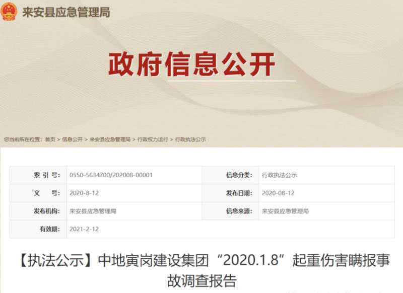 事故發(fā)生后,中地寅崗建設(shè)集團(tuán)有限公司未向負(fù)有安全職責(zé)的有關(guān)部門報(bào)告,也未向來安張山風(fēng)電項(xiàng)目發(fā)包方大唐來安新能源有限公司報(bào)告。后經(jīng)群眾舉報(bào),安徽省應(yīng)急管理廳專項(xiàng)核查組初步查證屬實(shí)。根據(jù)《關(guān)于督促開展大唐來安張山風(fēng)電項(xiàng)目瞞報(bào)生產(chǎn)安全事故調(diào)查處理的函》(皖安辦函〔2020〕45 號(hào))和《關(guān)于掛牌督辦大唐來安張山風(fēng)電項(xiàng)目“2020.1.8”事故的函》(滁安辦函〔2020〕18號(hào))文件要求,來安縣政府高度重視,依據(jù)《中華人民共和國(guó)安全生產(chǎn)法》、《生產(chǎn)安全事故報(bào)告和調(diào)查處理?xiàng)l例》等有關(guān)法律法規(guī)規(guī)定,經(jīng)縣政府授權(quán),2020年5月28日,來安縣應(yīng)急管理局成立了由顧永成局長(zhǎng)為組長(zhǎng),縣公安局、總工會(huì)、紀(jì)檢委、張山鎮(zhèn)政府等有關(guān)單位人員組成的中地寅崗建設(shè)集團(tuán)“2020.1.8”起重傷害瞞報(bào)事故調(diào)查組,對(duì)事故展開全面調(diào)查。