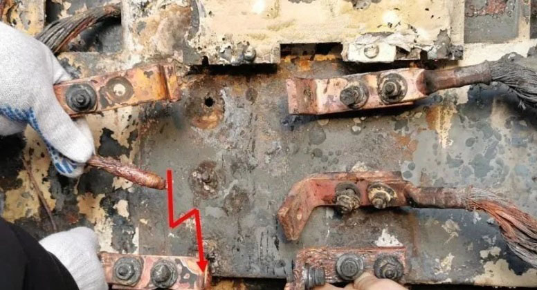 2020年1月12日,遼寧某風(fēng)電場(chǎng)45號(hào)機(jī)組因外包廠家不規(guī)范使用螺栓及墊片,導(dǎo)致螺栓有效連接長(zhǎng)度不足,受負(fù)荷與震動(dòng)的影響,造成機(jī)械連接點(diǎn)松動(dòng),導(dǎo)致相間短路,最終電氣柜內(nèi)起火。事故造成機(jī)艙燒損,輪轂及三支葉片根部過火,箱變高壓側(cè)C相熔斷器爆熔噴出,箱變門輕微變形。