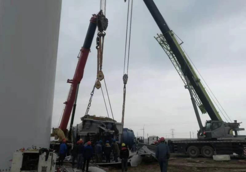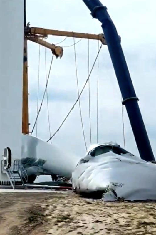 這起事故主要原因是因?yàn)榇箫L(fēng)自然因素,風(fēng)機(jī)加吊車的損失估計(jì)得千萬了。