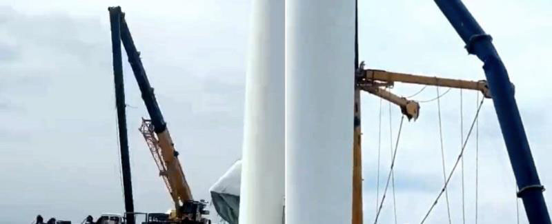 事故22.某風(fēng)電場(chǎng)吊車折臂,風(fēng)機(jī)加吊車千萬損失(附視頻)