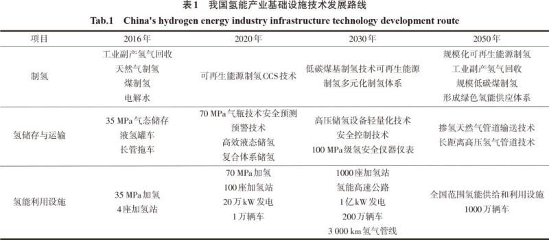 我國(guó)的氫能產(chǎn)業(yè)基礎(chǔ)設(shè)施技術(shù)發(fā)展路線見(jiàn)表1所示。