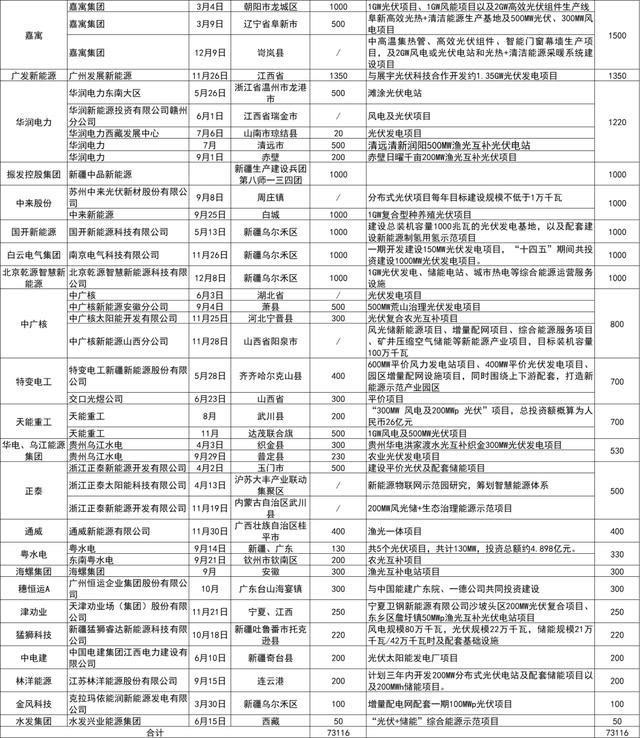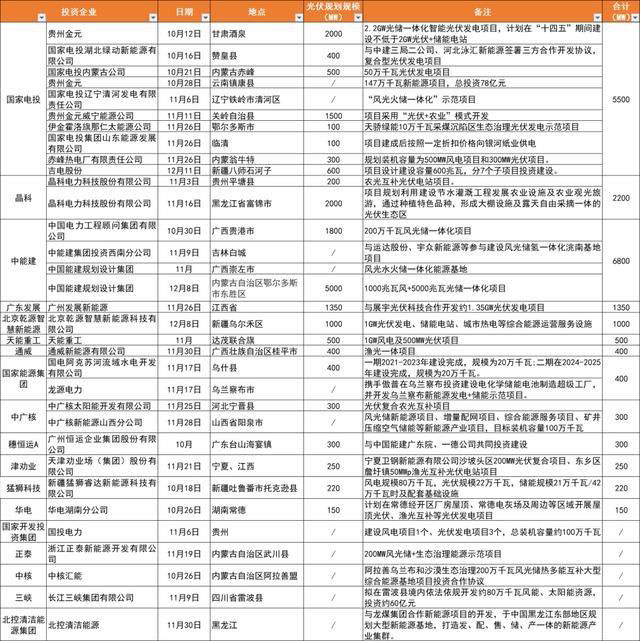 備注:上表匯總了自10月起各企業(yè)簽署擬投建的光伏項(xiàng)目情況,特別強(qiáng)調(diào)的是,因項(xiàng)目名單眾多,難免有疏漏,上述表格不做排名依據(jù),僅供讀者參考