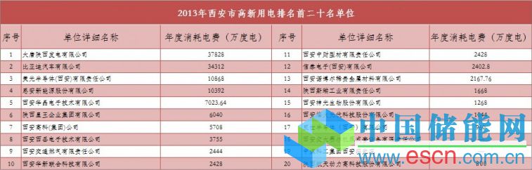 (2)大型地面電站主要集中在西北地區(qū)。分布式光伏電站建設(shè)規(guī)劃主要集中在東南沿海地區(qū)。按照下圖所做分析,我們將大型地面電站規(guī)劃容量最多的十個(gè)省及分布式光伏電站規(guī)劃容量最多的十個(gè)省分別予以標(biāo)記如下。不難得出如上結(jié)論。國(guó)家在制定規(guī)劃規(guī)程中,充分考慮了土地資源、屋頂資源、電費(fèi)等多個(gè)因素。筆者認(rèn)為分布式光伏電站的規(guī)劃在容量分配上也應(yīng)適當(dāng)考慮西北地區(qū)。如西安地區(qū)的分布式光伏電站規(guī)劃容量截止2015年僅為100MWp,實(shí)際上西安作為西北地區(qū)的窗口,考慮城市屋頂面積、光照資源、人口及電費(fèi)等因素,容量也應(yīng)適度放大至300-400MWp。在筆者對(duì)西安市高新區(qū)長(zhǎng)達(dá)半年的調(diào)研中獲悉,具備實(shí)施分布式光伏電站的容量就超過(guò)100MWp。上面表格為2013年西安市高新區(qū)用電前20位的企業(yè)單位??梢?jiàn)一斑。