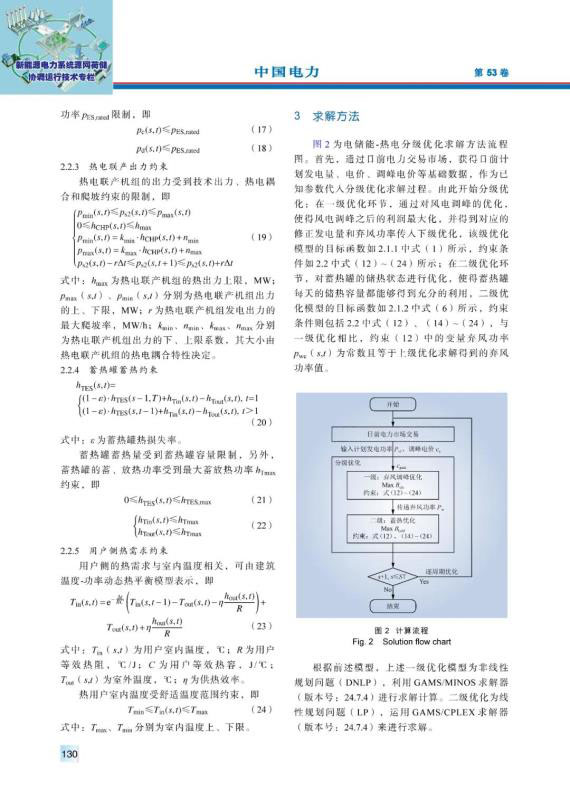 摘要:中國北方地區(qū)存在高比例的熱電聯(lián)產機組,受冬季采暖負荷制約,調節(jié)能力有限,引發(fā)冬季棄風問題,增加電儲能和儲熱設備是提高熱電聯(lián)產機組調節(jié)能力的重要手段。研究在電力輔助服務市場環(huán)境下的熱電聯(lián)產機組與電儲能、儲熱設備的協(xié)調優(yōu)化運行方法,分別建立以電儲能設備和熱電聯(lián)產機組調峰效益最大和蓄熱效益最大為目標,考慮棄風最大化消納、系統(tǒng)供熱需求以及熱電聯(lián)產機組、電儲能和儲熱設備運行約束的分級協(xié)調優(yōu)化模型。系統(tǒng)仿真測試表明:所提方法能夠協(xié)調優(yōu)化電儲能和儲熱裝置的運行,充分利用儲熱設備的多日調節(jié)能力,提高系統(tǒng)在電力市場中的運行收益,有效減少棄風。研究結果對解決當前電力市場環(huán)境下北方地區(qū)的冬季棄風問題具有一定價值。